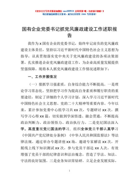 / 国有企业党委书记抓党风廉政建设工作述职报告