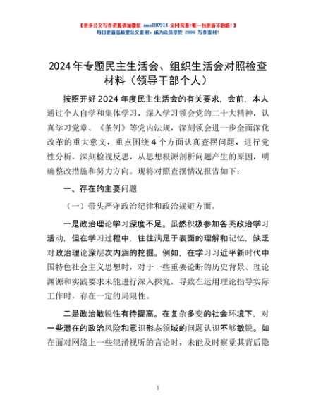 / 2024年专题民主生活会、组织生活会对照检查材料(领导干部个人)