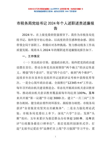 / 市税务局党组书记2024年个人述职述责述廉报告