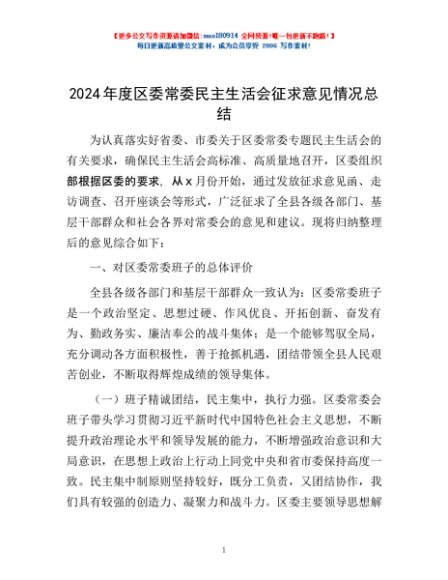 / 2024年度区委常委民主生活会征求意见情况总结