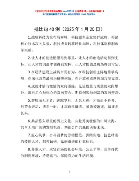 / 排比句40例(2025年1月20日)