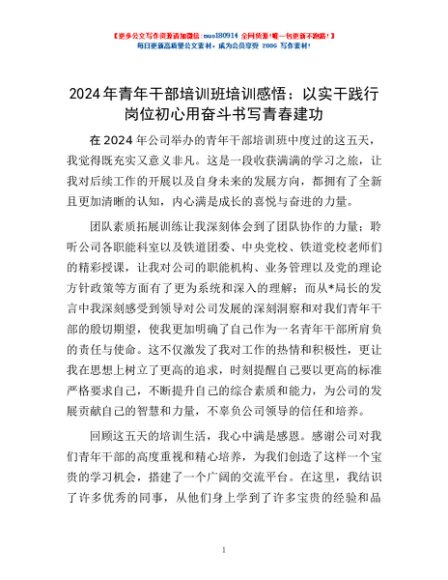 / 2024年青年干部培训班培训感悟:以实干践行岗位初心用奋斗书写青春建功