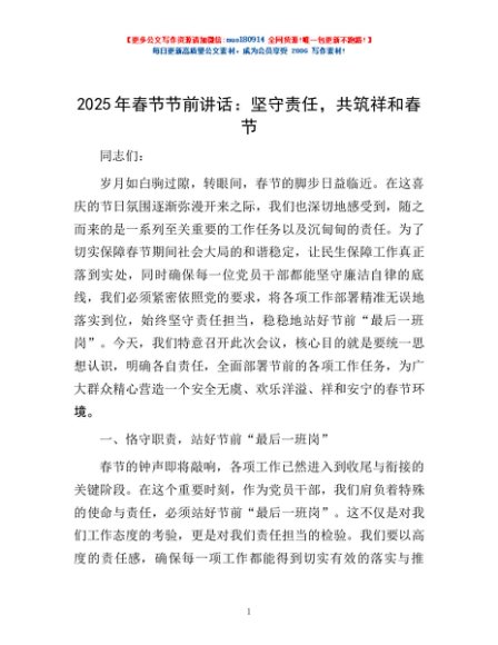 / 2025年春节节前讲话:坚守责任,共筑祥和春节