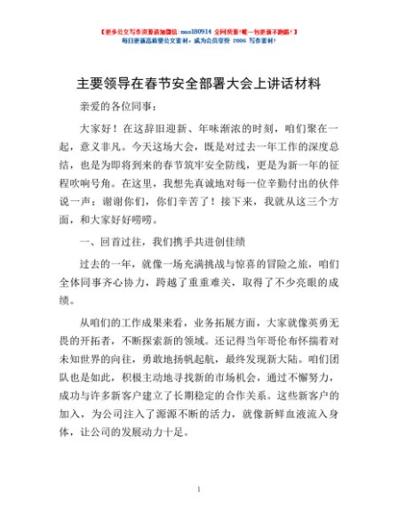 / 主要领导在春节安全部署大会上讲话材料