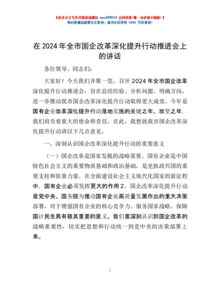 / 在2024年全市国企改革深化提升行动推进会上的讲话