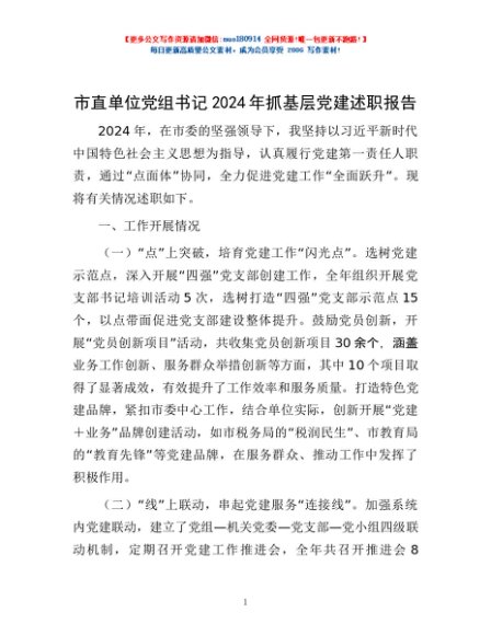 / 市直单位党组书记2024年抓基层党建述职报告