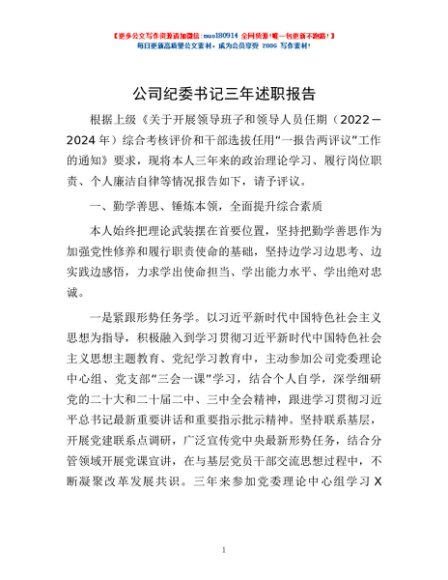 / 公司纪委书记三年述职报告