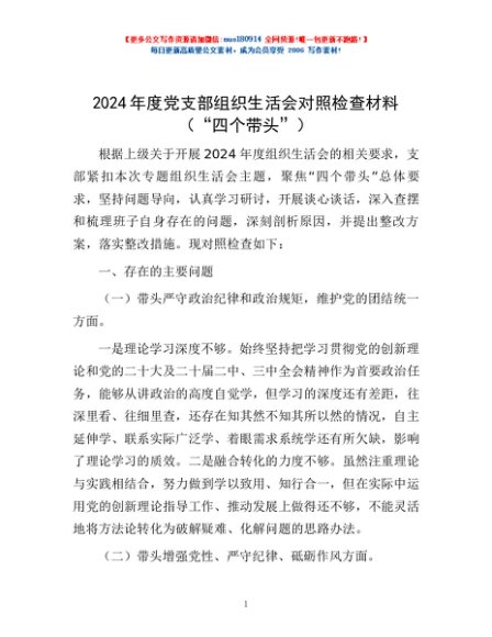 / 2024年度党支部组织生活会对照检查材料(“四个带头”)