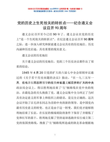 / 党的历史上生死攸关的转折点——纪念遵义会议召开90周年