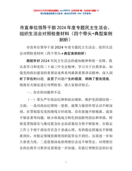/ 市直单位领导干部2024年度专题民主生活会、组织生活会对照检查材料(四个带头+典型案例剖析)