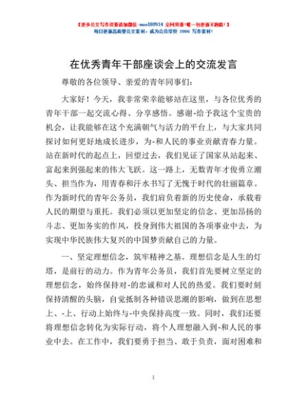 / 在优秀青年干部座谈会上的交流发言