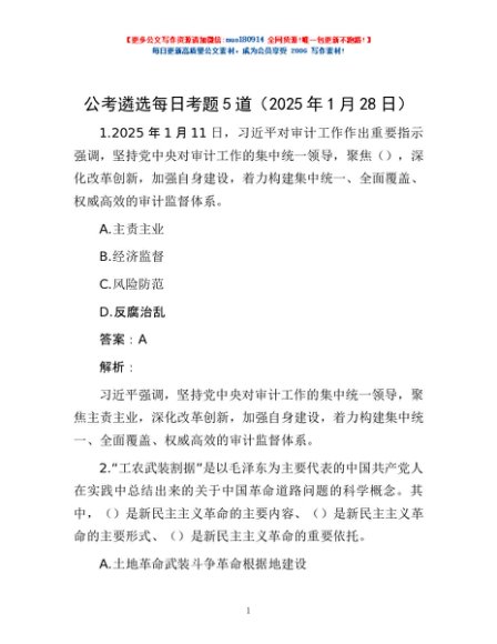 / 公考遴选每日考题5道(2025年1月28日)