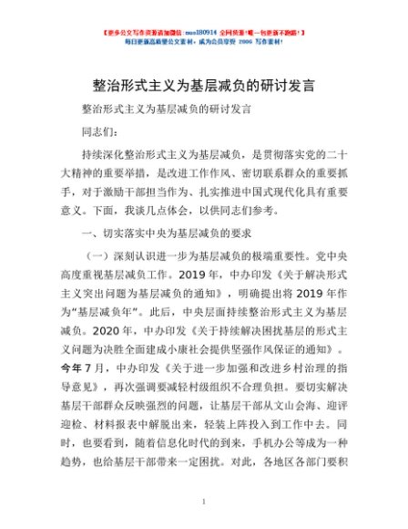 / 整治形式主义为基层减负的研讨发言