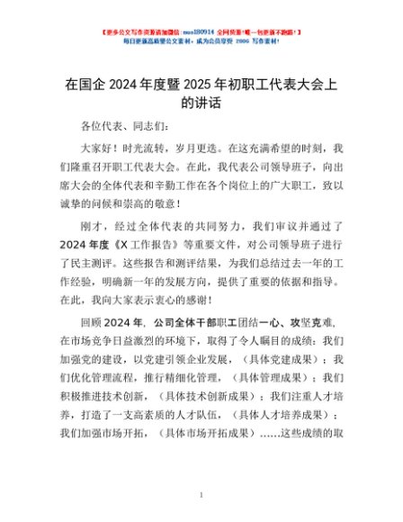 / 在国企2024年度暨2025年初职工代表大会上的讲话