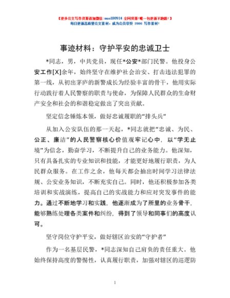 事迹材料:守护平安的忠诚卫士