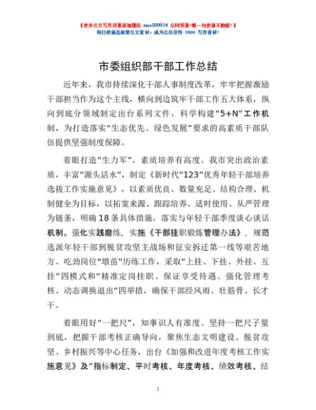 / 市委组织部干部工作总结