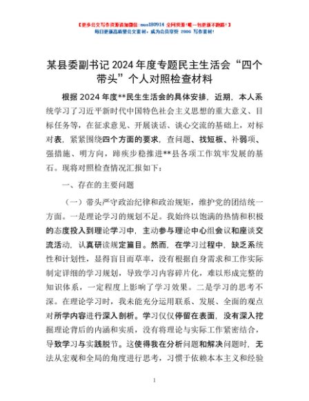 / 某县委副书记2024年度专题民主生活会“四个带头”个人对照检查材料