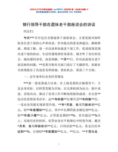 / 银行领导干部在退休老干部座谈会的讲话