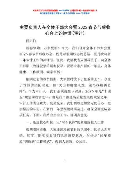 / 主要负责人在全体干部大会暨2025春节节后收心会上的讲话(审计)