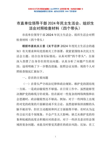 / 市直单位领导干部2024年民主生活会、组织生活会对照检查材料(四个带头)