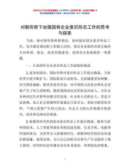 / 对新形势下加强国有企业意识形态工作的思考与探索
