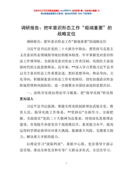 / 调研报告:把牢意识形态工作“极端重要”的战略定位