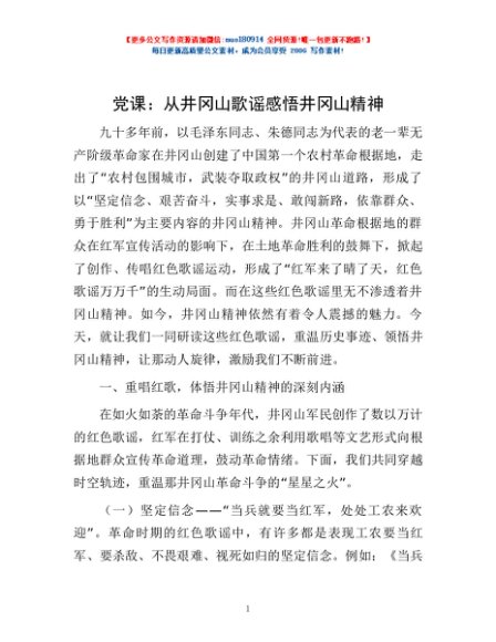 / 党课:从井冈山歌谣感悟井冈山精神