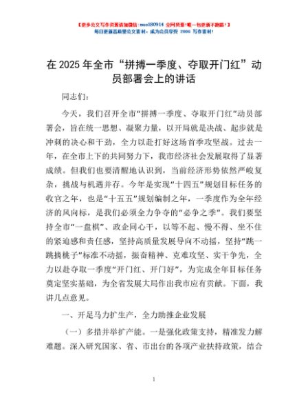 / 在2025年全市“拼搏一季度、夺取开门红”动员部署会上的讲话