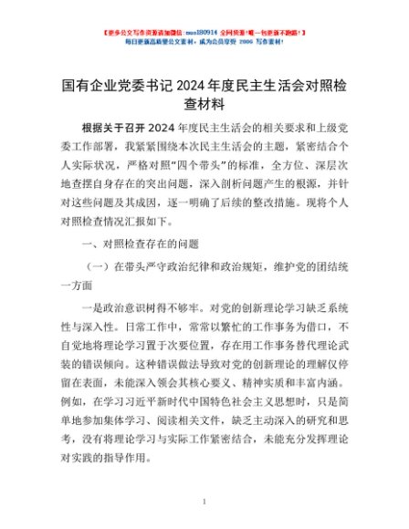 / 国有企业党委书记2024年度民主生活会对照检查材料