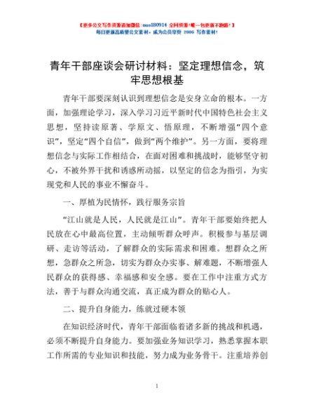 / 青年干部座谈会研讨材料:坚定理想信念,筑牢思想根基