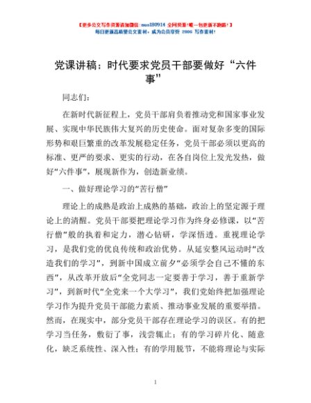 / 党课讲稿:时代要求党员干部要做好“六件事”