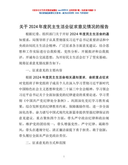 / 关于2024年度民主生活会征求意见情况的报告