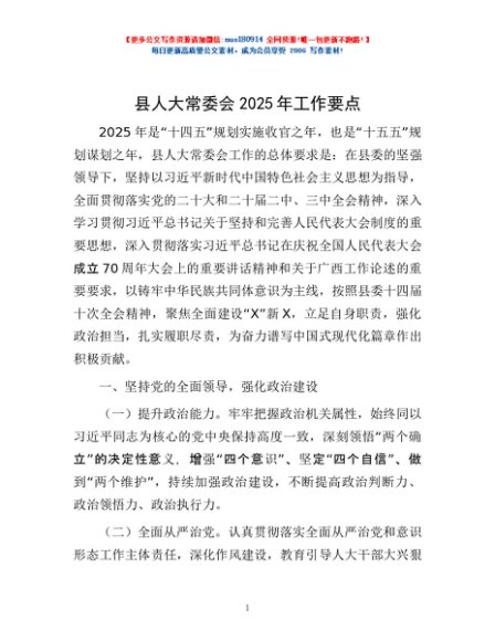 / 县人大常委会2025年工作要点