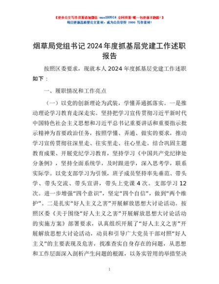 / 烟草局党组书记2024年度抓基层党建工作述职报告