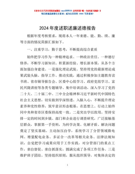 / 2024年度述职述廉述德报告