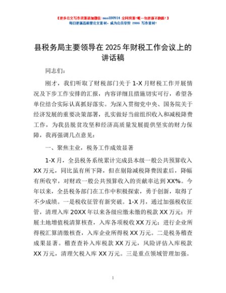 / 县税务局主要领导在2025年财税工作会议上的讲话稿