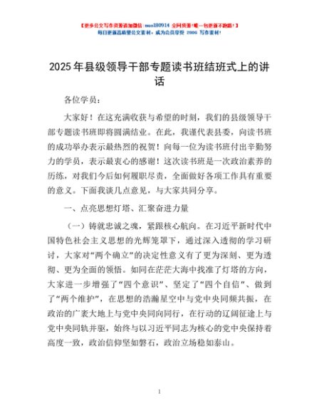 / 2025年县级领导干部专题读书班结班式上的讲话