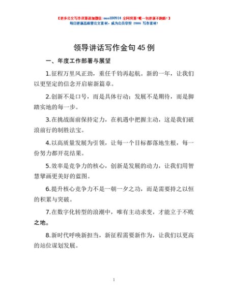 / 领导讲话写作金句45例