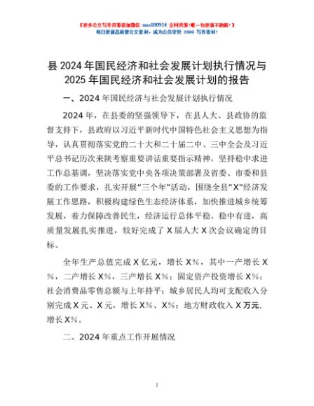 / 县2024年国民经济和社会发展计划执行情况与2025年国民经济和社会发展计划的报告