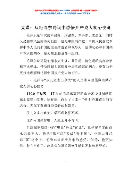 / 党课:从毛泽东诗词中感悟共产党人初心使命