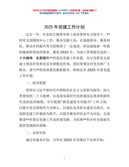 / 2025年党建工作计划