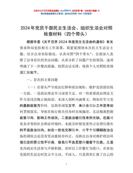 / 2024年党员干部民主生活会、组织生活会对照检查材料(四个带头)