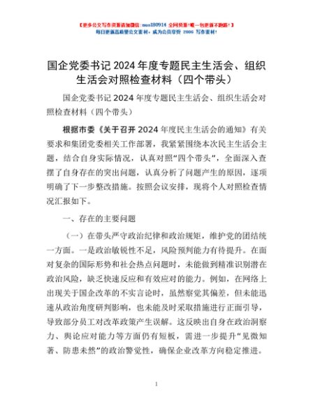 / 国企党委书记2024年度专题民主生活会、组织生活会对照检查材料(四个带头)