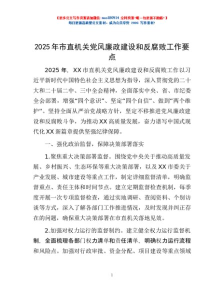 / 2025年市直机关党风廉政建设和反腐败工作要点