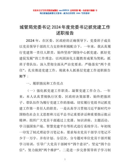 / 城管局党委书记2024年度党委书记抓党建工作述职报告