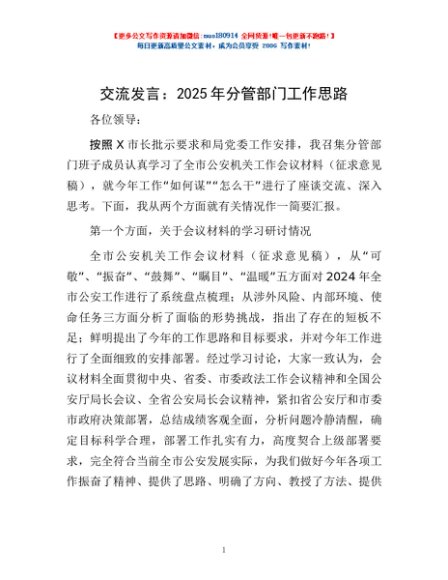 / 交流发言:2025年分管部门工作思路