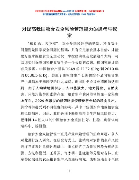 / 对提高我国粮食安全风险管理能力的思考与探索