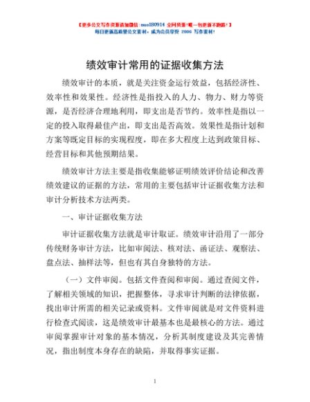 / 绩效审计常用的证据收集方法