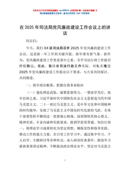/ 在2025年司法局党风廉政建设工作会议上的讲话
