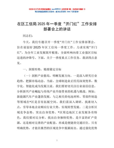 / 在区工信局2025年一季度“开门红”工作安排部署会上的讲话